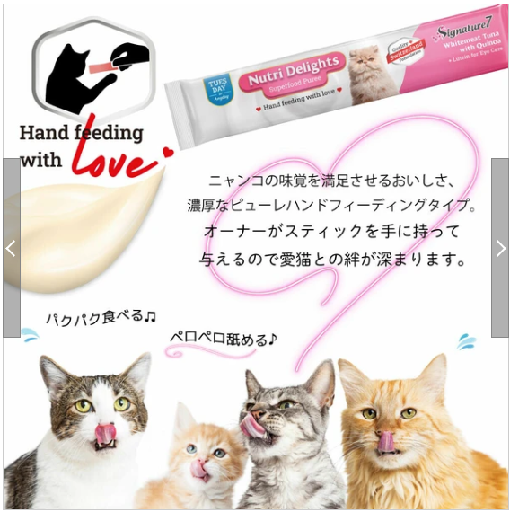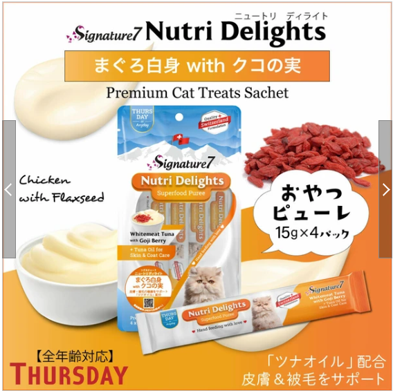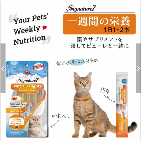 シグネチャー7から猫用おやつピューレ ニュートリーディライト新発売。